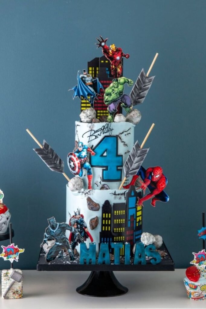 This multi-faceted cake captures the excitement of a superhero universe, making it a memorable focal point for the party. Consider adding superhero masks or a “villain” challenge game to enhance the heroic theme. It’s an epic way to celebrate a young hero’s four years of adventure.20.
