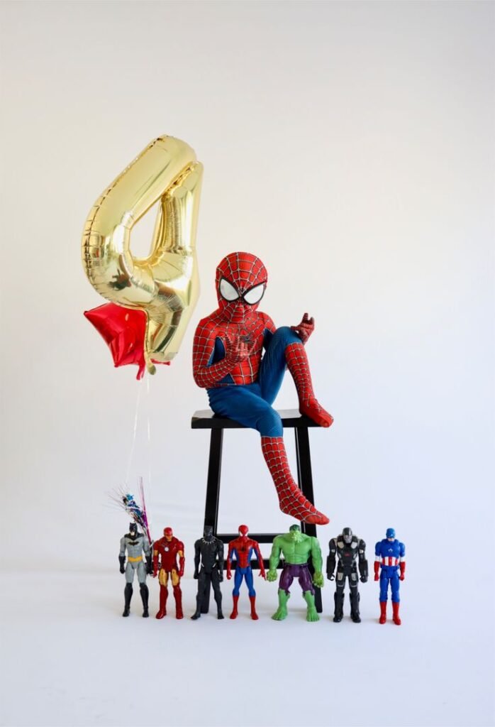 Celebrate the energy of 4-year-old birthday with this adorable Spiderman photo shoot idea, its a super choice among 4th birthday themes for boys.