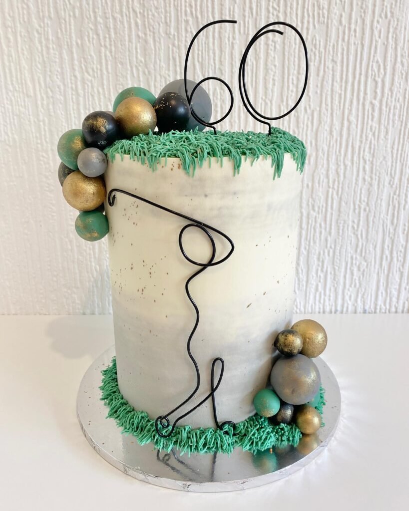 This stunning cake offers a sleek and stylish way to celebrate. The clean white base is adorned with a large, textured green initial, creating a personal and elegant monogram. It’s a modern design that feels both sophisticated and unique.