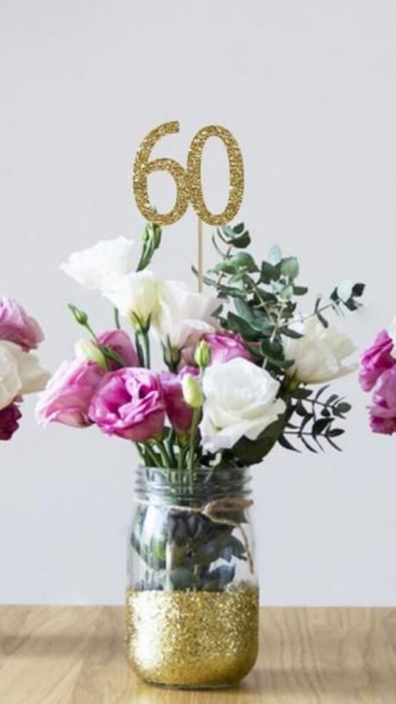 This elegant yet fun centerpiece creates a warm and celebratory atmosphere for guests. These practical 60th birthday ideas are easy to create and add a personal touch to your party decor. It’s a delightful way to celebrate a golden milestone.
