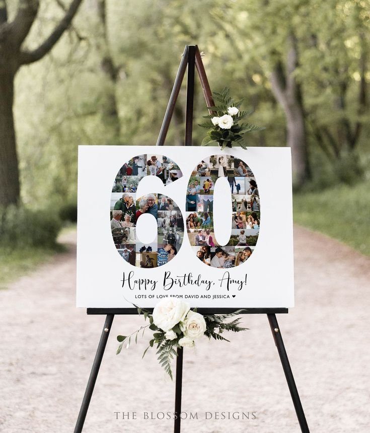 Commemorate sixty wonderful years with a personalized photo collage. This artistic display forms the number “60” using cherished images, offering a heartwarming journey through memories. It’s a truly thoughtful and visual tribute for anyone’s special day.