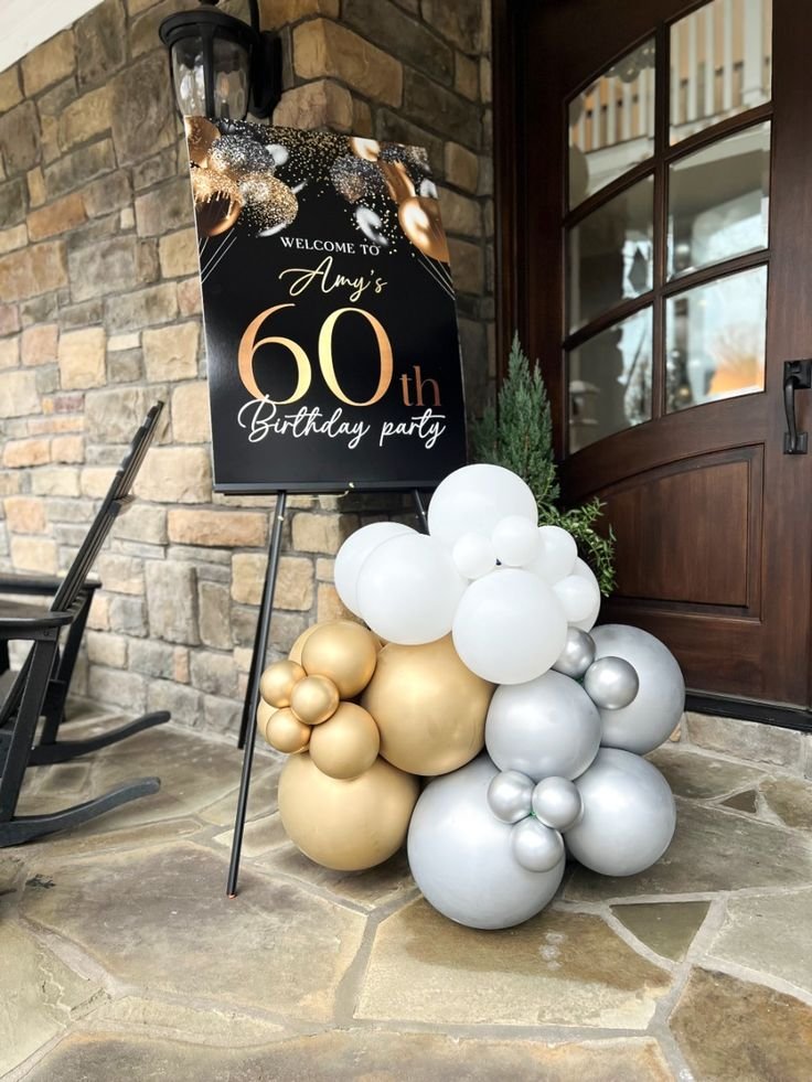 Celebrate a milestone 60th birthday with sophisticated style. This elegant display features shimmering gold and champagne balloons, creating a luxurious atmosphere for any gathering. Imagine guests arriving to this stunning visual, instantly feeling the festive spirit.
