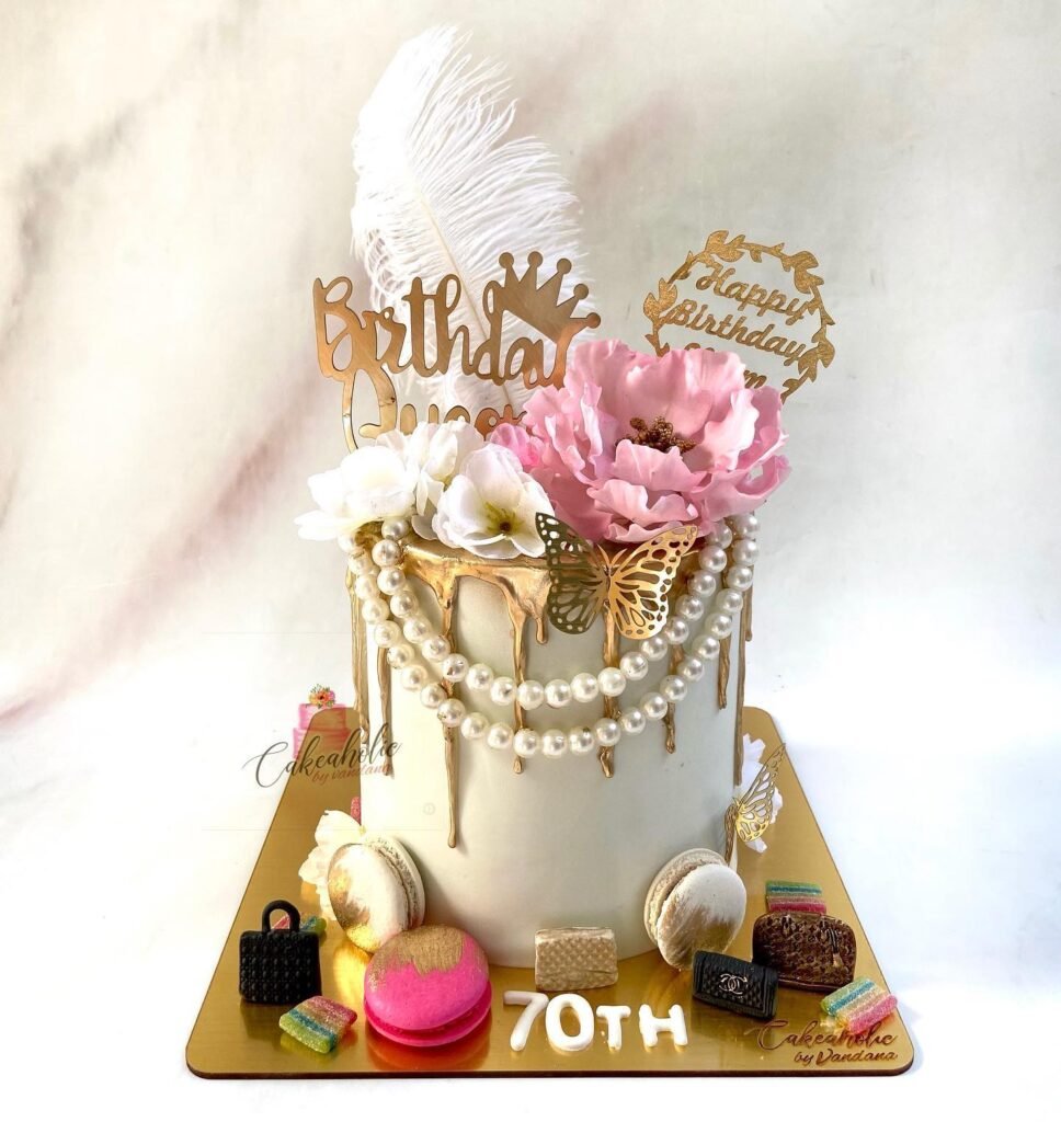 The intricate piping work and attention to detail show just how much thought went into making this milestone birthday unforgettable. A cake like this becomes both dessert and decoration, serving as a beautiful focal point that guests will admire before enjoying every delicious bite.