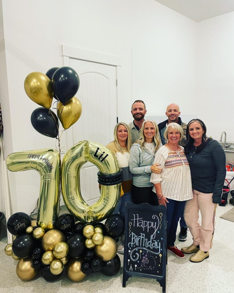 The “SO LOVED” banner perfectly captures the sentiment, while simple balloon decorations and red roses create a warm atmosphere. Having multiple generations together around one table creates those precious memories that last forever.