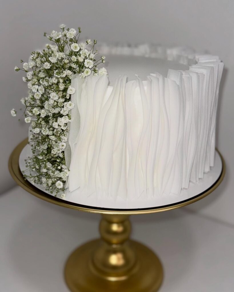 Sometimes elegance comes from simplicity, and this beautiful white cake proves that perfectly. The vertical textured buttercream creates such an interesting visual element without being too busy or overwhelming.