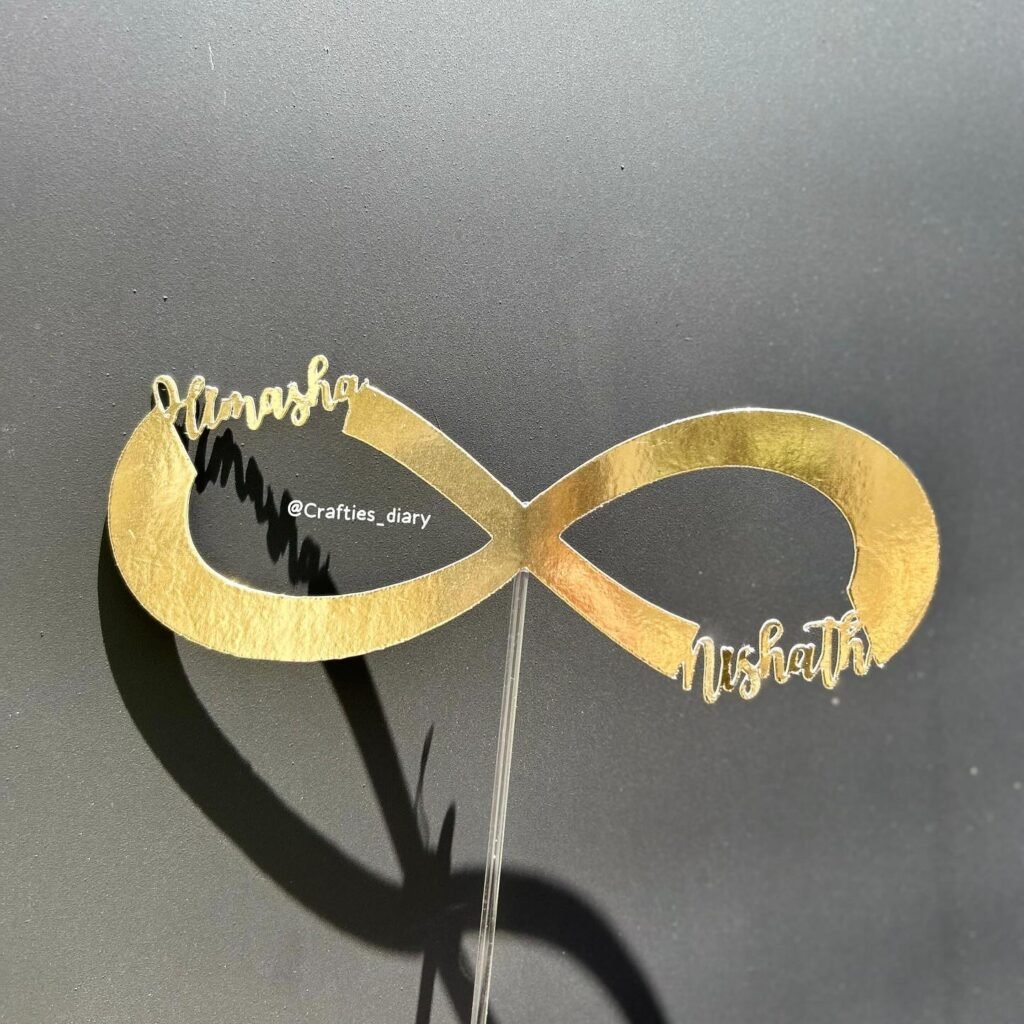 This stunning golden infinity symbol with your names is pure perfection for any celebration cake. The metallic finish catches the light beautifully, and there’s something so meaningful about the endless loop representing your forever love.