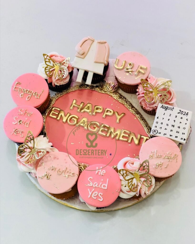 The calendar marking their special date is such a clever detail that makes everything feel more personal. Those delicate butterflies and “She Said Yes” toppers add the perfect finishing touches.