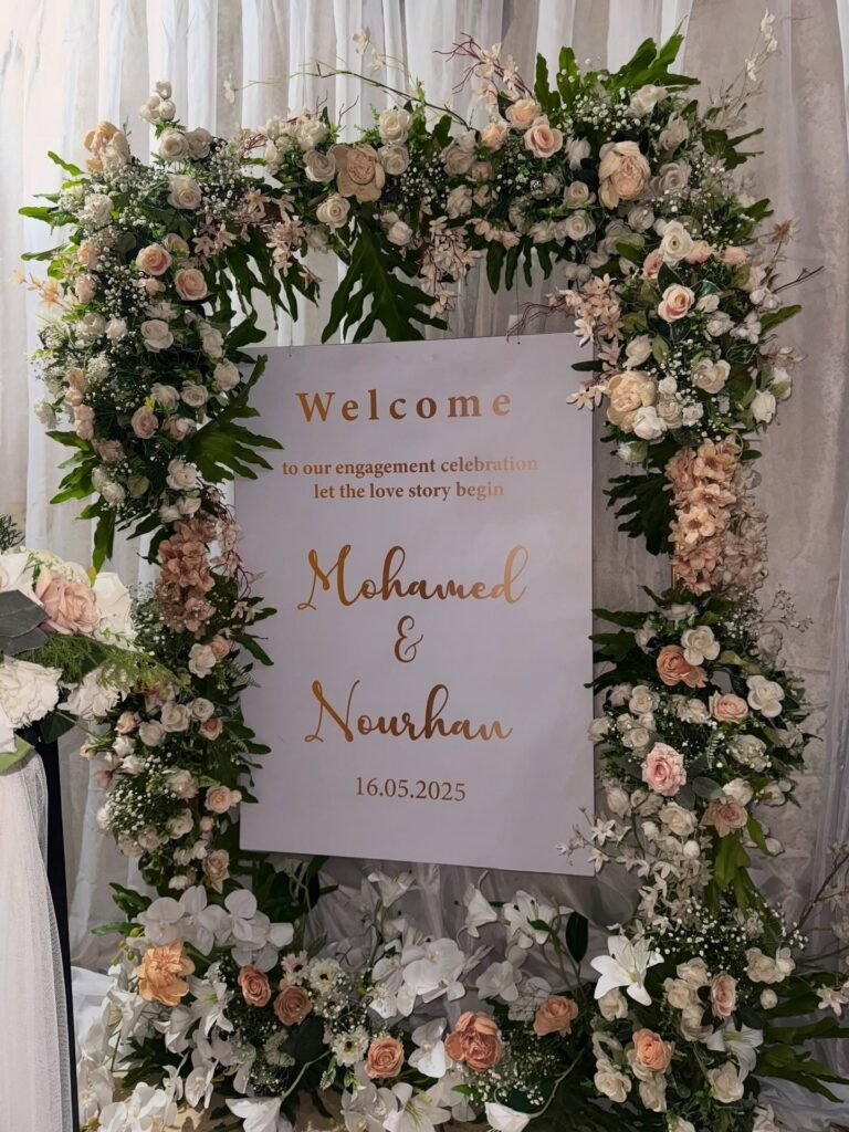 First impressions matter, and this welcome sign is absolutely stunning with its lush floral archway.