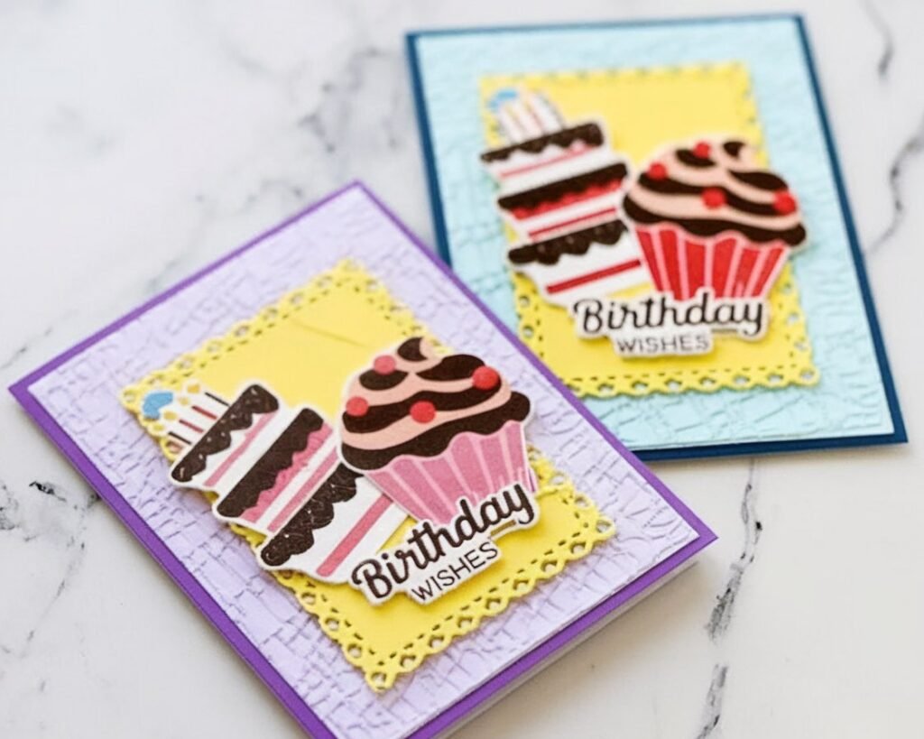The layered construction adds dimension without overwhelming the playful design. Decorative edges and stamped sentiments complete the bakery-fresh look. These cards work beautifully for friends who love sweets, bright colors, or whimsical designs.