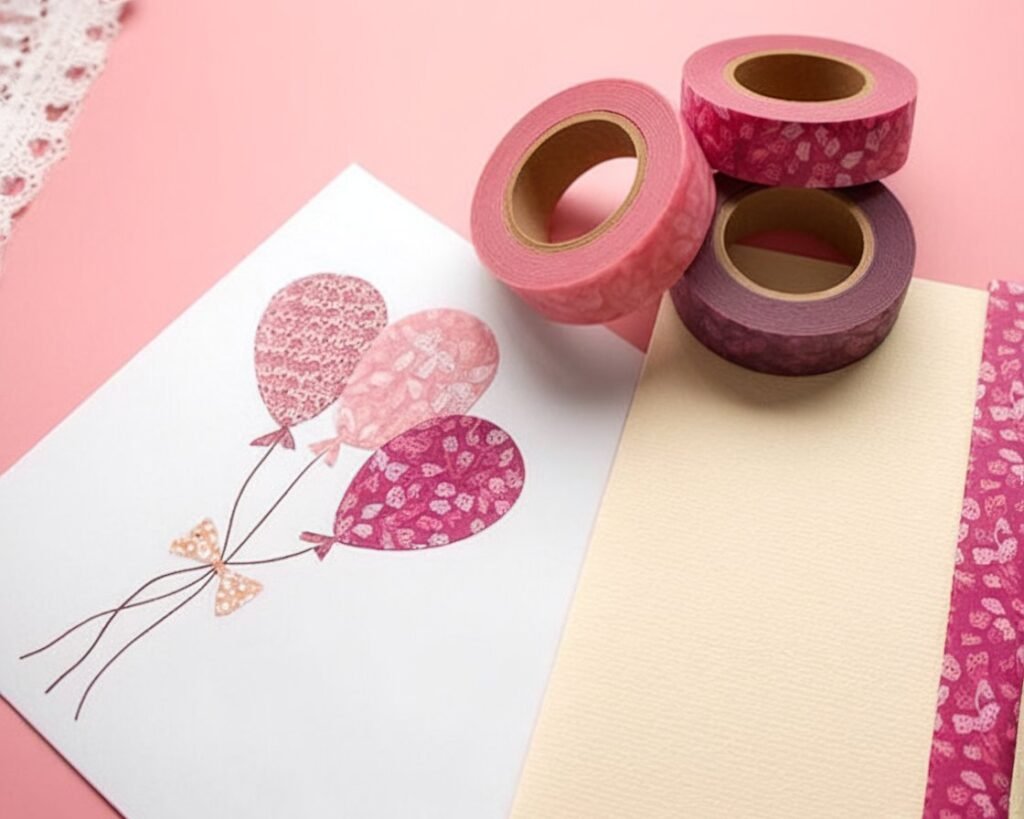 Thin ribbon strings connect the balloons to create realistic movement. The neutral background keeps focus on the colorful tape patterns. Friends will appreciate the clever use of everyday craft supplies to create something genuinely special and celebration-worthy.