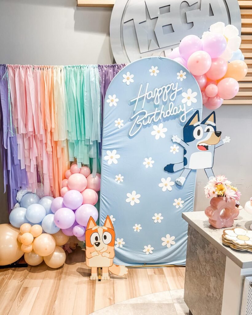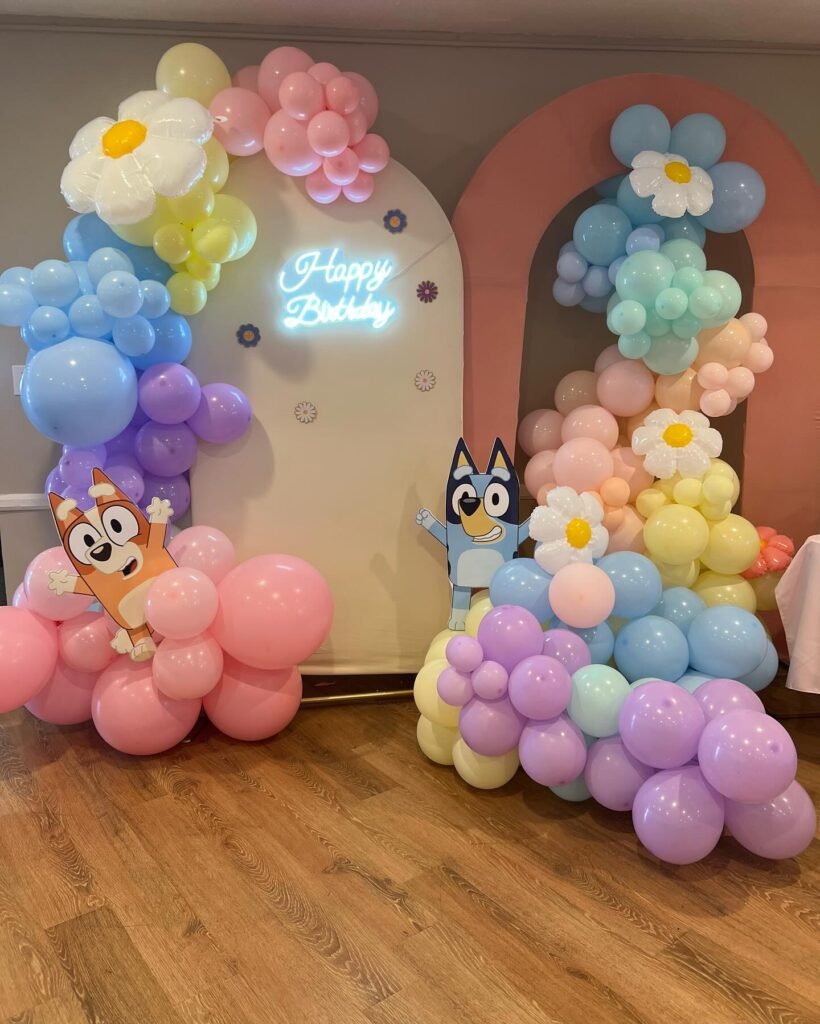 Creating this look requires careful color coordination and strategic balloon placement. The organic balloon garland style feels modern and Instagram-worthy while staying true to the beloved show’s aesthetic. Your little guests will feel like they’ve stepped right into Brisbane with the Heeler family.
