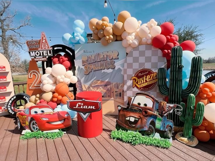 Rev up the excitement with a Cars the Movie themed birthday party that’s sure to delight little fans of Lightning McQueen and his Radiator Springs crew! Perfect for kids who love fast cars, colorful characters, and high-speed fun, a Cars-themed celebration brings the magic of the movie right to your backyard or party space.