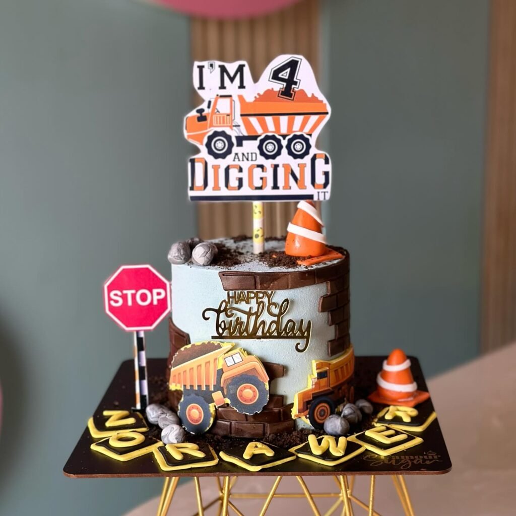 Clever details like the “Road Closed” sign and various construction trucks make this cake a conversation starter. Parents love how this design combines delicious cake with educational play elements. This construction themed birthday party showstopper proves that creative cake decorating can transform a simple dessert into an unforgettable centerpiece that guests will remember long after the last crumb disappears.