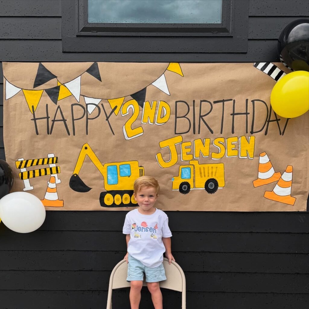 This creative backdrop proves you don’t need expensive decorations to make memorable moments. Simple craft paper becomes construction magic through clever cutting and bright colors. The personalized touch of adding the birthday child’s name makes this display extra special for photos and memories.