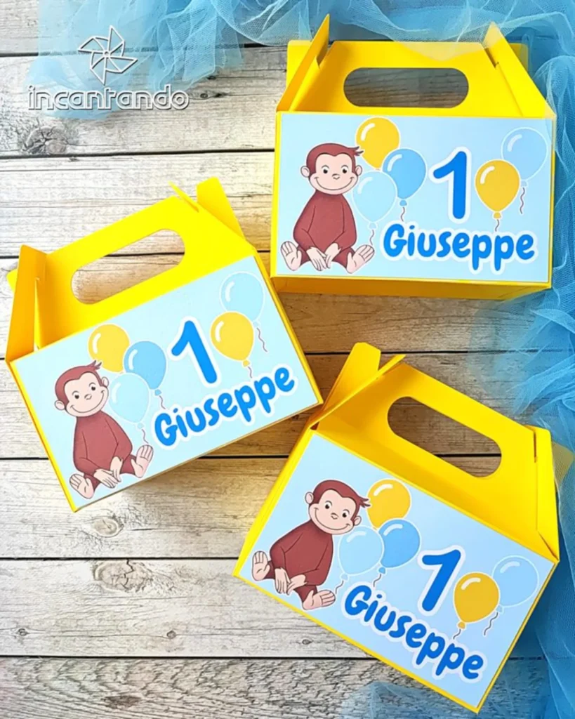 Parents love how these curious george birthday party ideas favors eliminate the need for separate gift bags while looking professionally designed. Kids treasure boxes with their own names, often keeping them long after the candy disappears. The thoughtful personalization shows guests how much their attendance means to the birthday family.