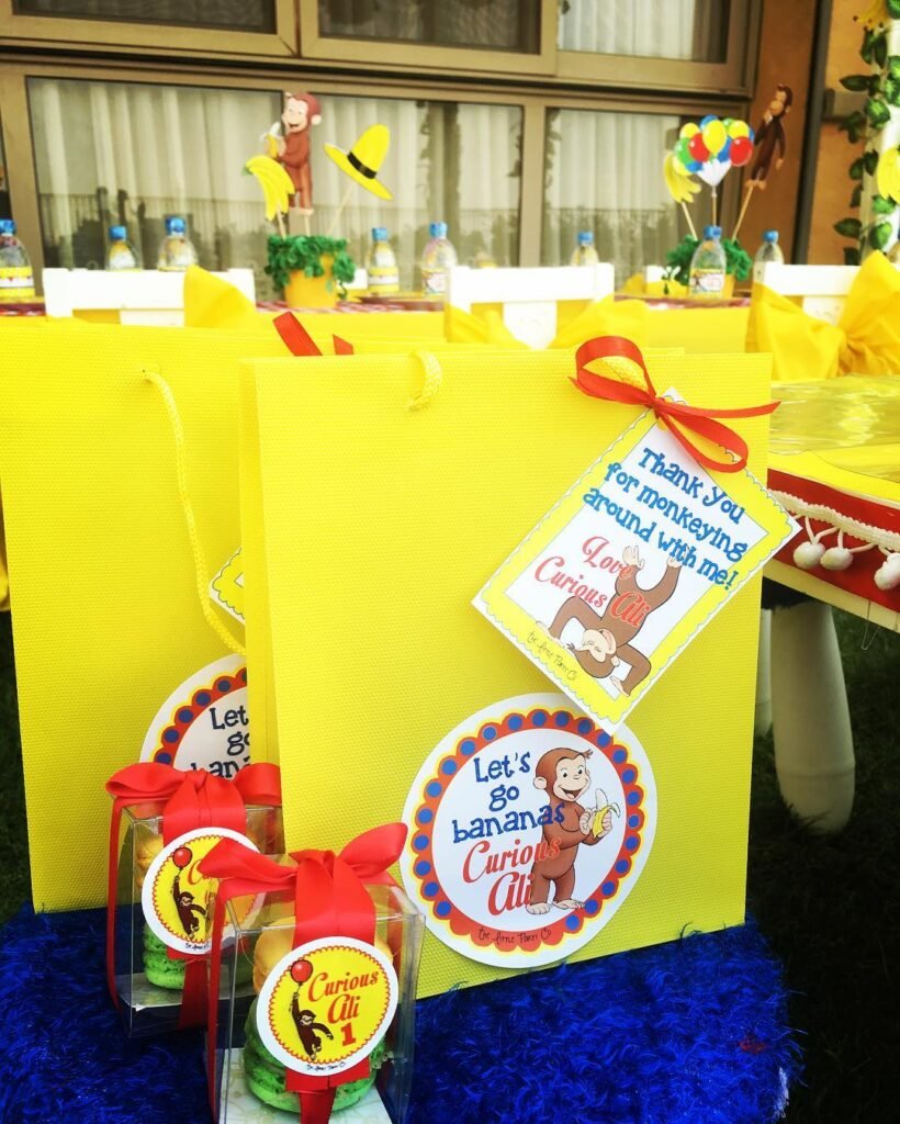 Each bag includes a personalized thank you tag that references George’s adventures, making every guest feel appreciated for joining the celebration. The red ribbon details add that classic touch while the clear favor containers allow parents to see contents at a glance. This dual approach gives families options for different types of favors.