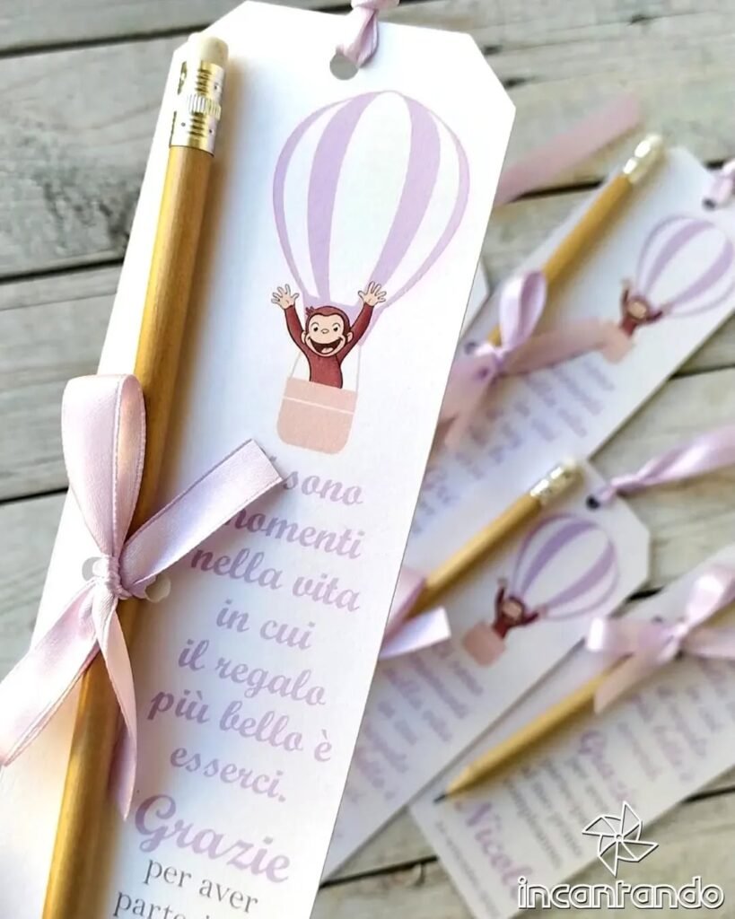 The soft purple and pink color scheme adds a gentle twist to the traditional George palette while maintaining the character’s adventurous spirit. Each pencil becomes a treasured reminder of the special day, and kids actually use bookmarks in their favorite stories.