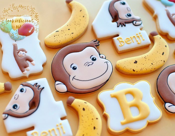 The realistic monkey faces capture George’s mischievous expression while those speckled banana cookies look good enough to fool anyone. The letter cookies allow for personalized touches that make each child feel special at the celebration.