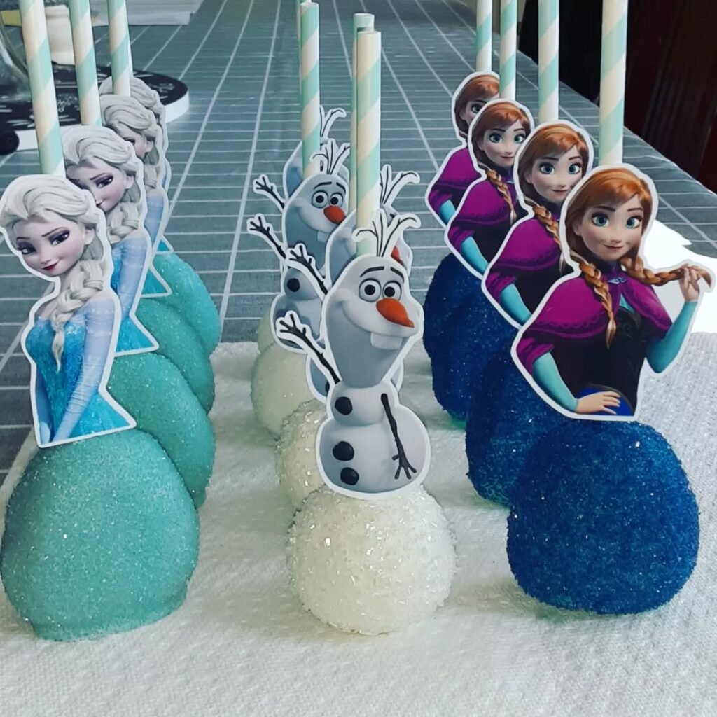 These exquisite sugar cookies showcase the artistry possible with Frozen-themed treats. Each cookie features intricate royal icing designs that capture the essence of Arendelle’s magic.