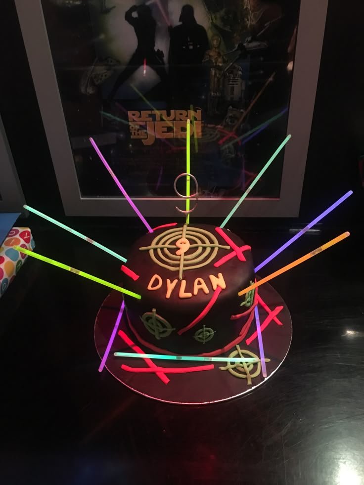 13. Galactic Light Saber Cake for Laser Tag Birthday Party