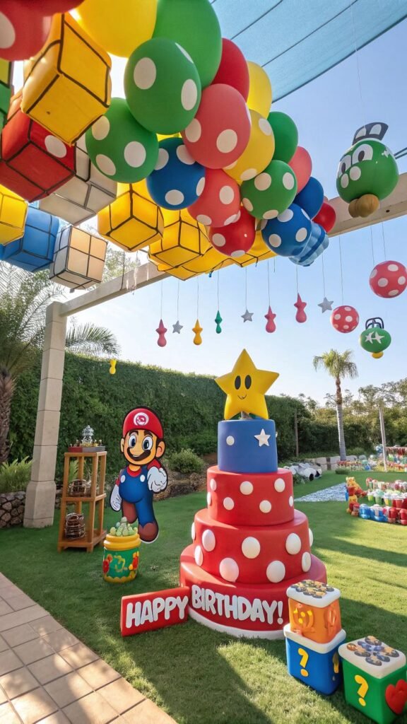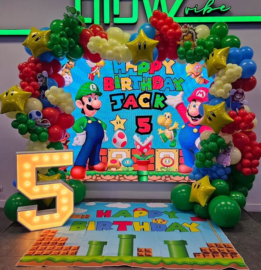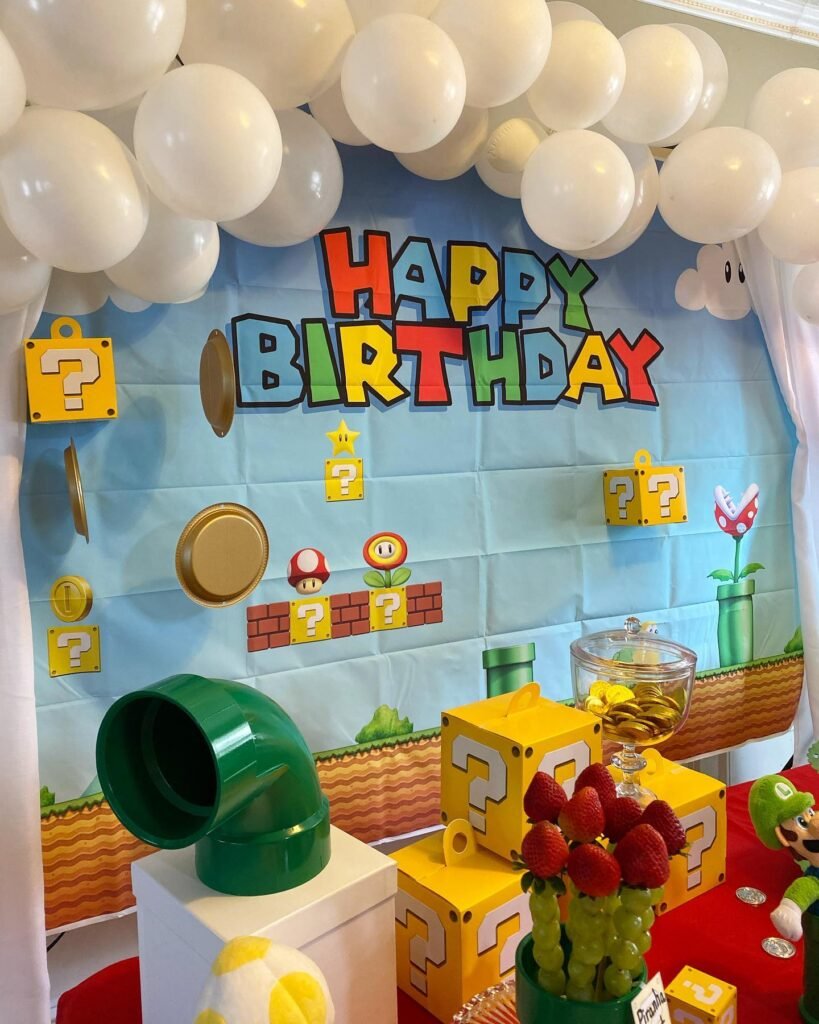 From mushroom and star decorations to themed cakes and interactive games, every detail can transport guests into the world of Mario, Luigi, and friends.