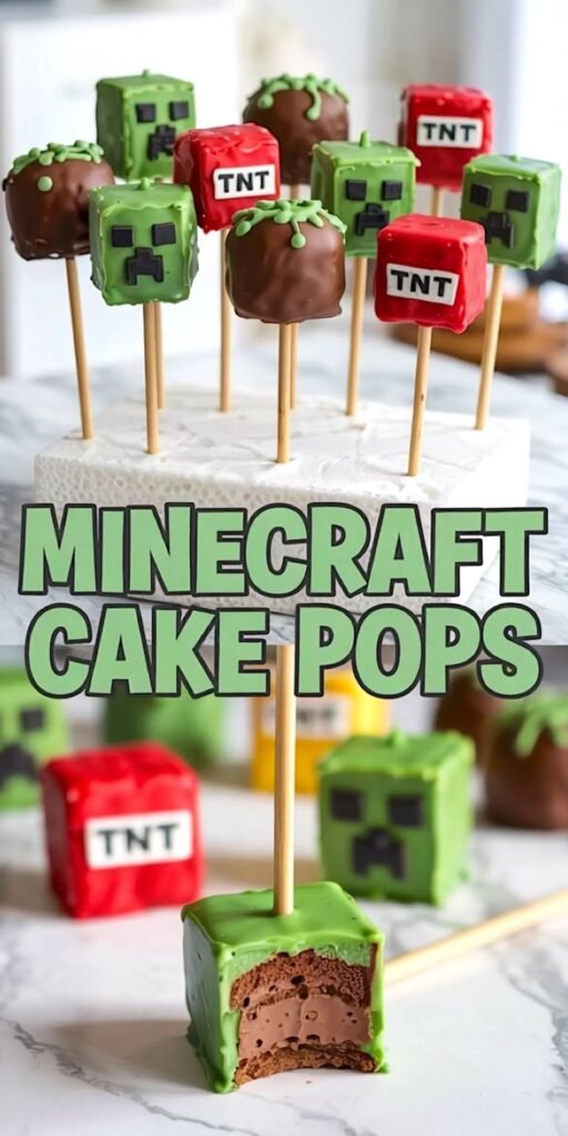 Each pop is on a sturdy wooden stick, making them easy for little hands to hold and eat without mess. They are a clever and convenient way to serve dessert or a chilled treat, especially on a warm day. These Creeper pops embody the fun spirit of the game in an edible form.