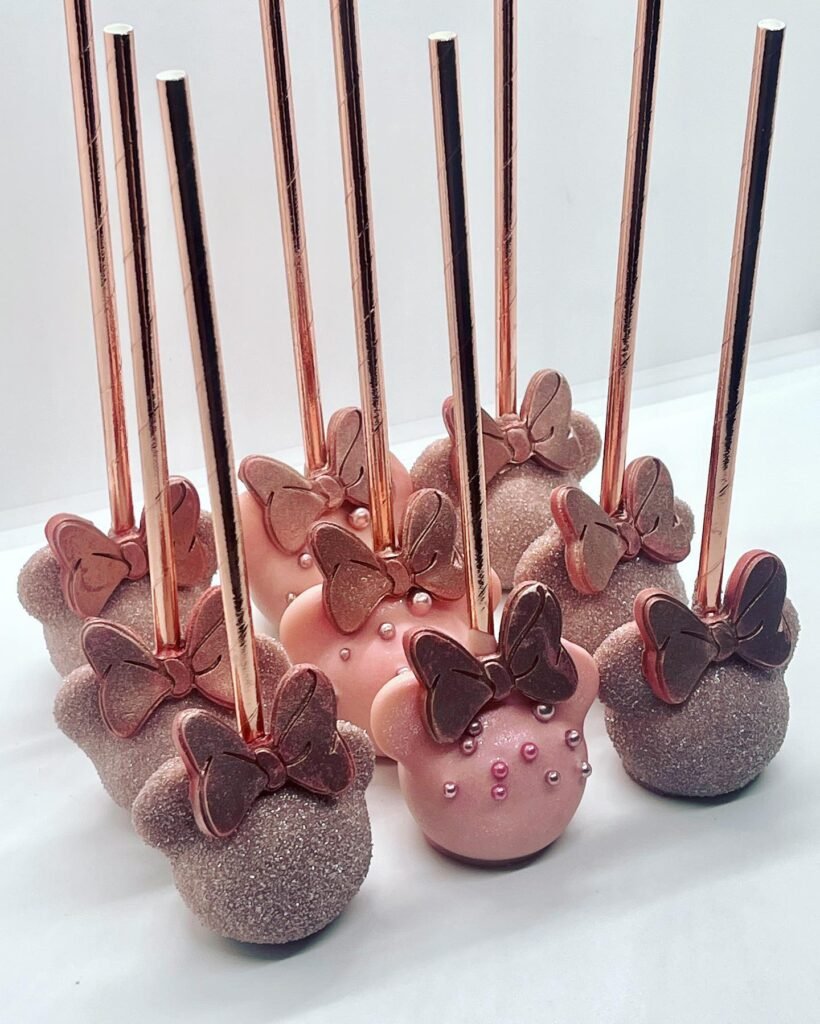 13. Gorgeous Rose Gold Minnie Cake Pops