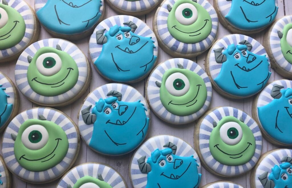 The Sulley cookies even boast his signature horns, adding extra detail. Some cookies feature a classic blue and white striped background, while others show a plain white base, making for an appealing variety.