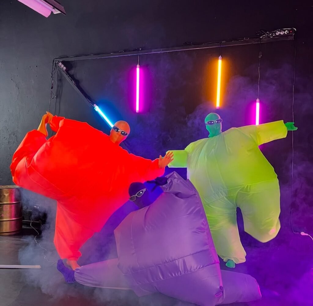 Get ready for the ultimate glow-up showdown! These larger-than-life inflatable suits transform ordinary party guests into bouncing, glowing gladiators.