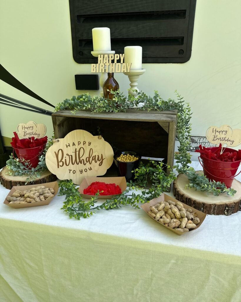 This outdoor birthday party idea works beautifully in any backyard setting, from covered porches to open garden spaces. The natural color palette of greens, browns, and cream creates a timeless appeal that photographs wonderfully. The rustic elements feel authentic rather than forced, making guests feel like they’ve stepped into a cozy countryside celebration where nature takes center stage.