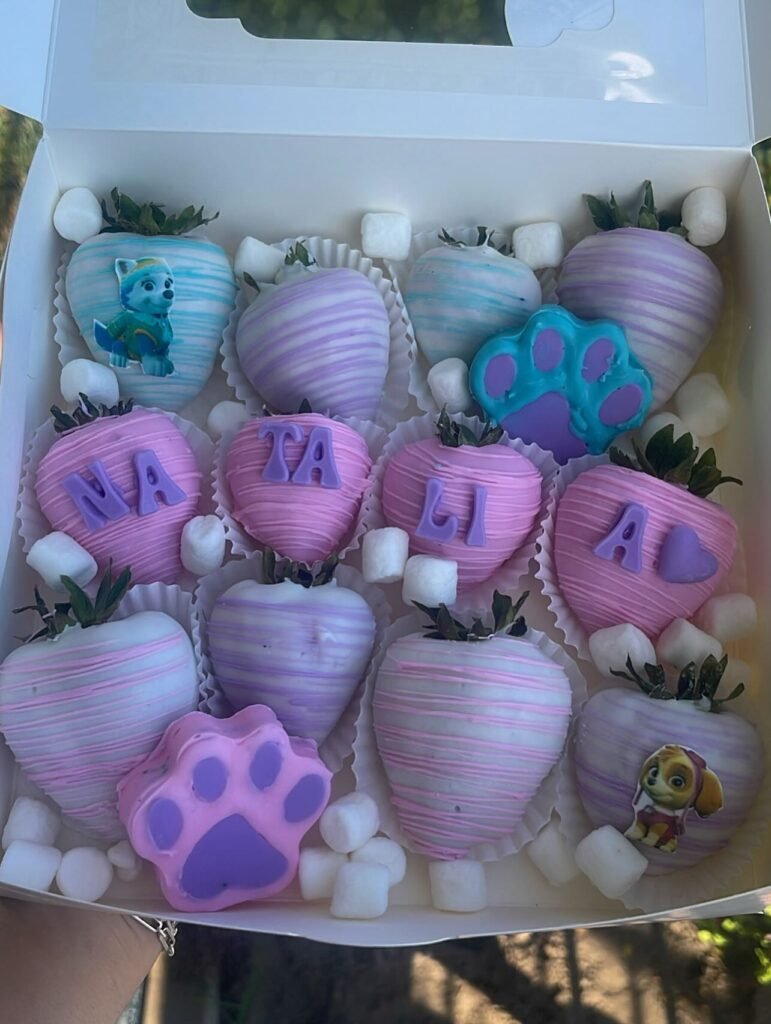 These custom chocolate-covered strawberries are an adorable treat. Each one is a tiny work of art. They are a delicious addition to your Paw Patrol party.