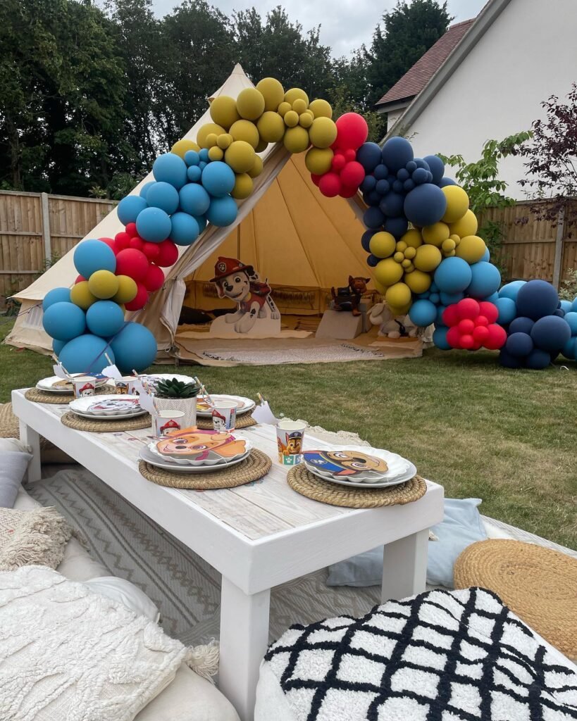 Transform your backyard into Adventure Bay. This large tent creates an exciting play area. It is a brilliant outdoor Paw Patrol party idea.