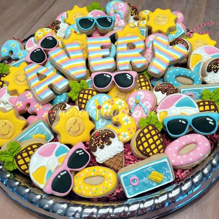 You will find everything from smiling suns to stylish sunglasses and cute floating inner tubes. They even include detailed ice cream cones and flip flop designs. The level of detail on each treat is impressive.