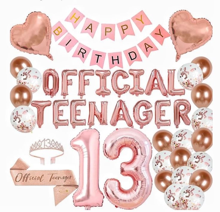 A charming “13” foil balloon stands out, clearly marking the age. The set also includes a delicate “13” tiara and an “Official Teenager” sash, ensuring the birthday person feels extra special. This comprehensive package provides everything needed for a memorable and fun teen birthday party idea.