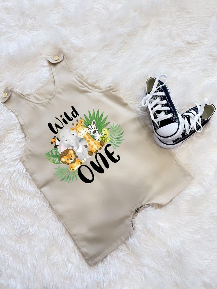 This adorable outfit is perfect for a wild one birthday party boys theme. The beige romper with “Wild One” and cute safari animals is comfortable and stylish. It’s an easy and charming way to dress the birthday boy.