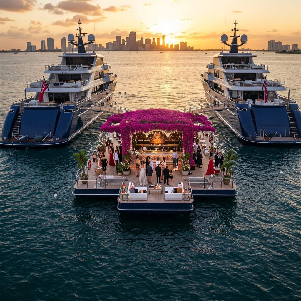 Why settle for a traditional venue when you can exchange vows between two luxury yachts? This incredible setup creates an unforgettable ceremony space with the city skyline as your backdrop.