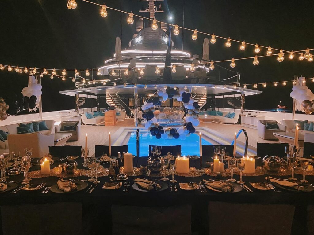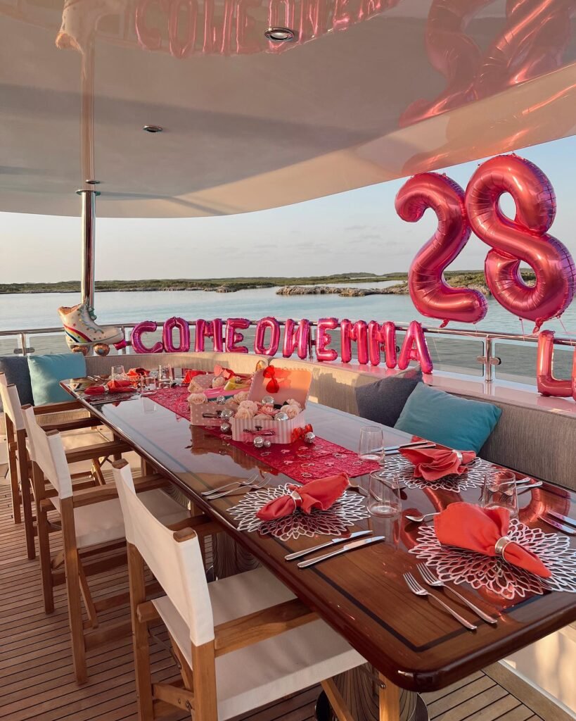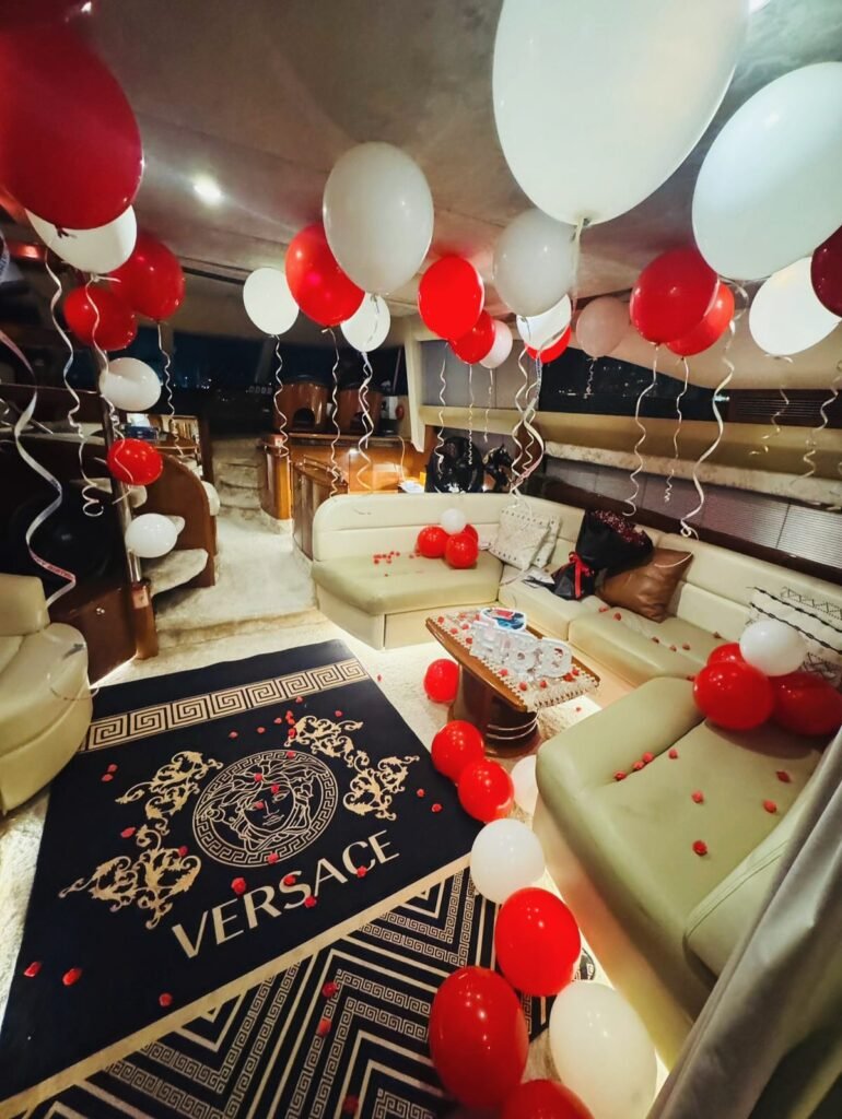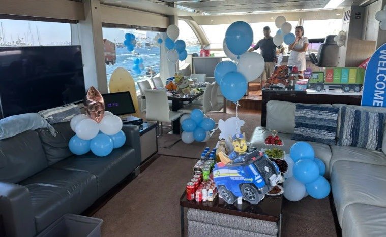 Sometimes the most memorable parties happen in smaller, more intimate spaces. A surprise party setup with personalized balloon letters and themed decorations can turn any yacht cabin into a celebration zone.