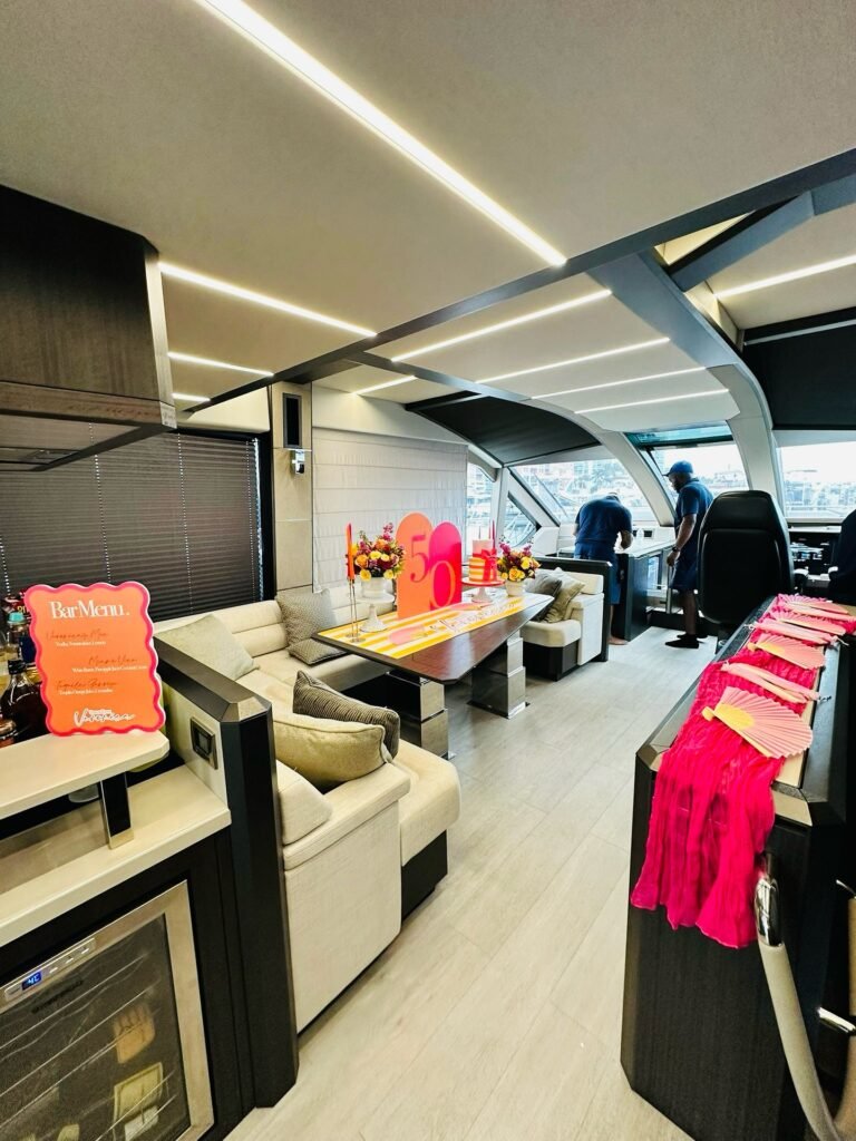 This setup proves that you don’t need massive outdoor decks to throw an amazing yacht party.